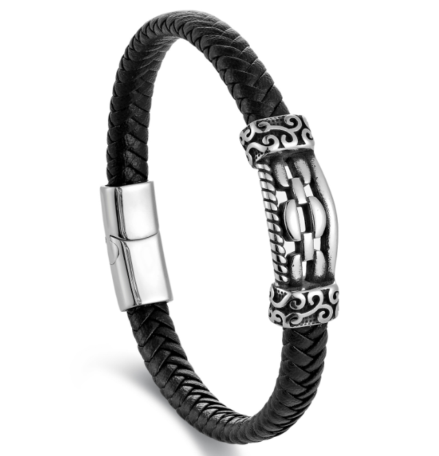 silver & black leather