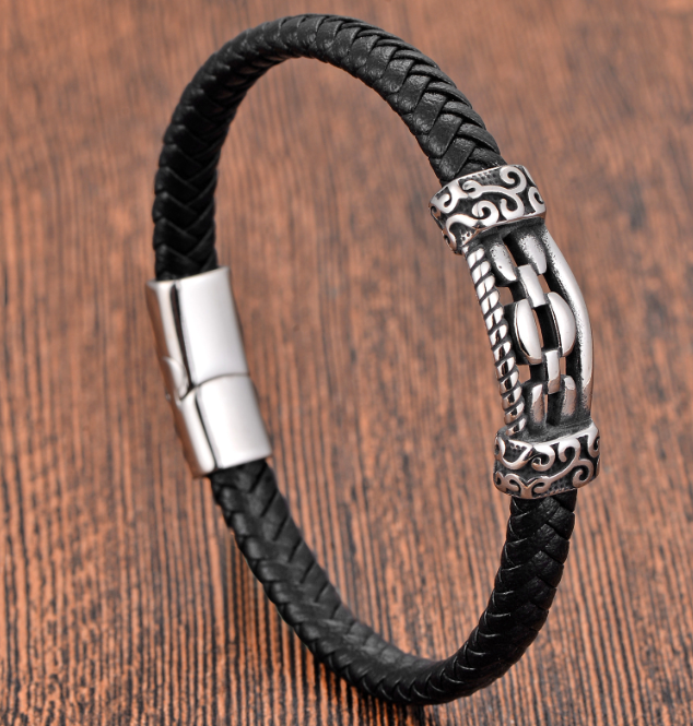 silver & black leather